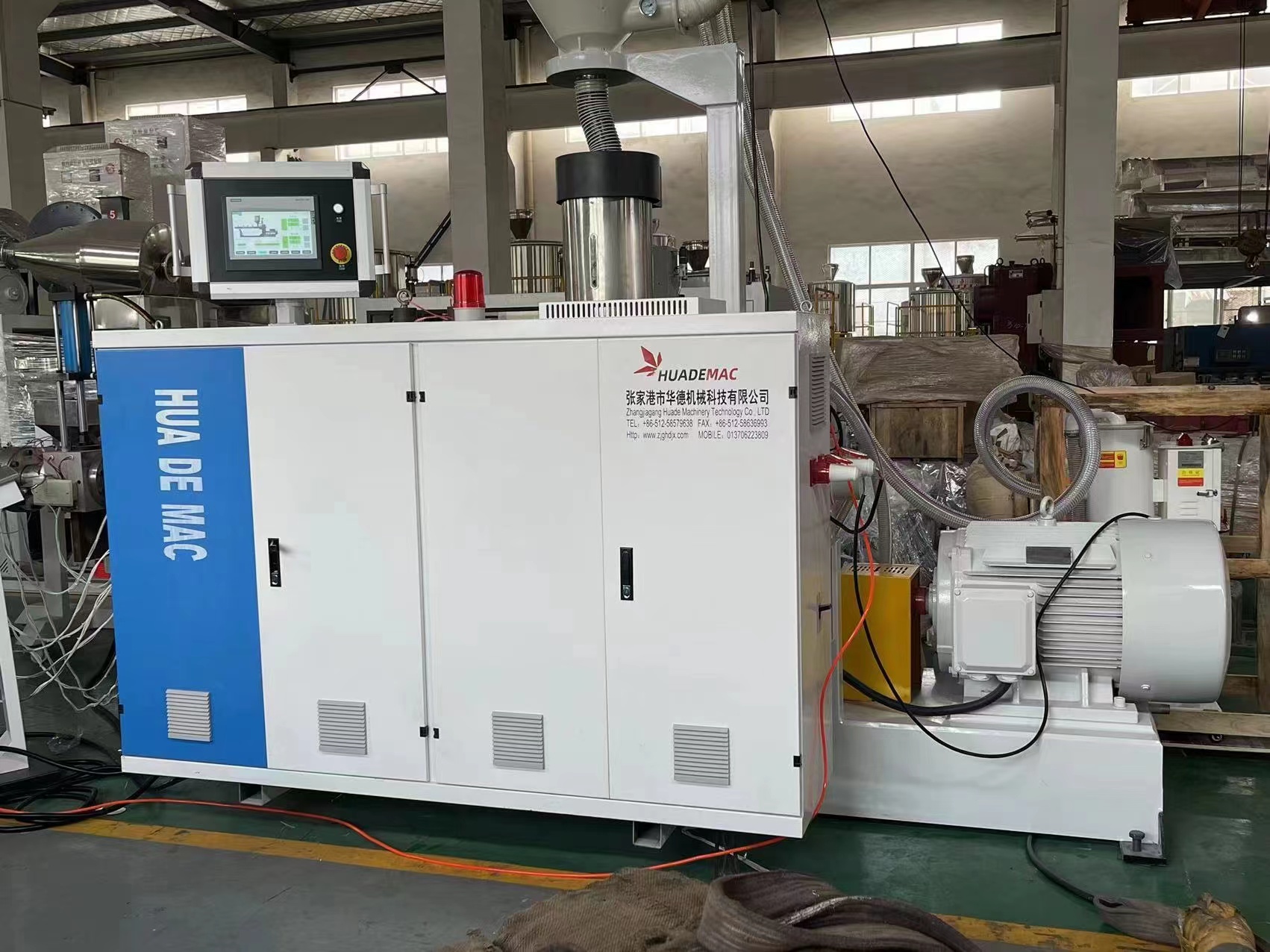 系列單雙螺桿擠出機(jī)、PP-R管材機(jī)組、PVC管材機(jī)組、HDPE管材機(jī)組、PVC各類異型材等成套擠出生產(chǎn)線及干燥機(jī)、上料機(jī)、破碎機(jī)、高速混合機(jī)、牽引機(jī)、磨粉機(jī)等系列塑料機(jī)械